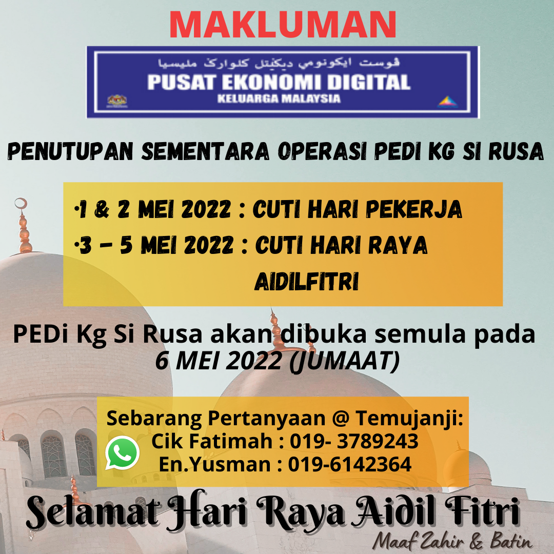 Tarikh 1 April 2022 Masa :2.30 pm Peserta :1 Orang Lokasi :PEDi Kg Si Rusa Tujuan Dihadiri oleh seorang warna emas berusia 72 tahun.Membantu komuniti yang kurang mahir menggunakan aplikasi Zoom Meeting dan membantu beliau untuk menukar nama di dalam aplikasi tersebut […]