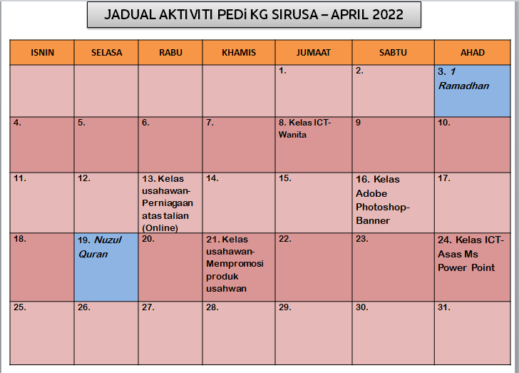 Tarikh : 3-18 Mac 2022 Masa :- Peserta : 11 Orang Lokasi : PEDi Kg Sirusa Tujuan Kelas ini bertujuan untuk membantu usahawan yang sedia ada untuk memohon geran daripada kerajaan untuk menampung perbelanjaan perniagaan mereka.Usahawan-usahawan yang berminat untuk memohon […]
