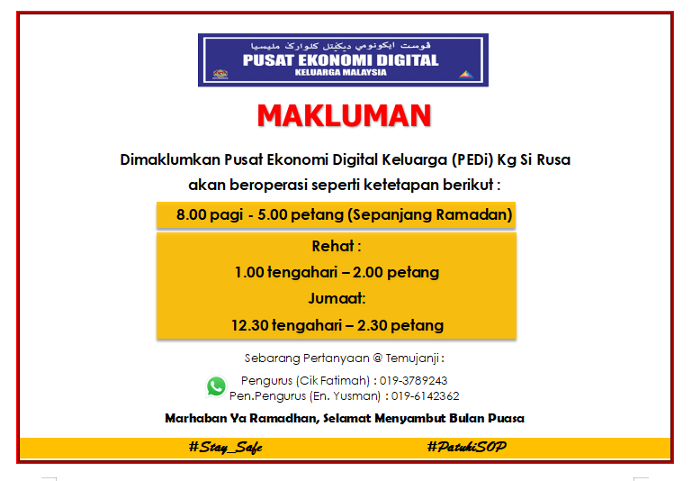 Tarikh :7 & 8 Febuari 2022 Masa :10.00 am- 12.00 pm Peserta :4 Orang Lokasi :Bilik Latihan PEDi Kg Si Rusa Tujuan Kelas ini dihadiri oleh empat orang usahawan yang terdiri daripada usahawan baru dan sedia ada dimana mereka sudah menjalankan […]